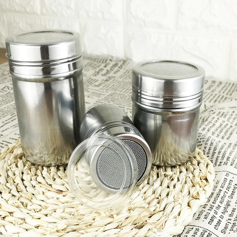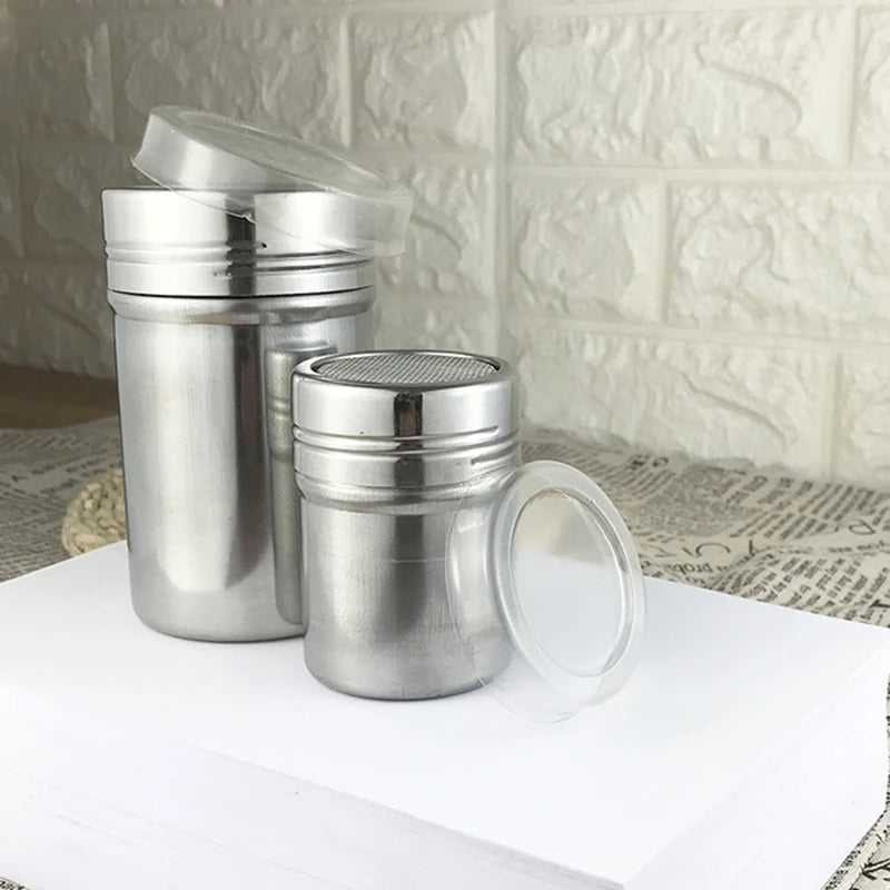 Stainless Steel Sprinkle Cocoa Cinnamon Sugar Gauze Mesh Jar Seasoning Bottle Cafe Powder Duster Pepper Shaker Can Powder Sieve